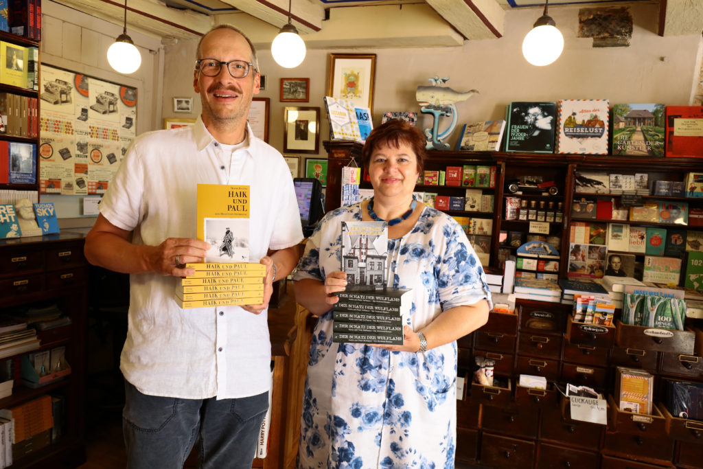Peter und Katrin Hoffmann sind freischaffende Autoren, die 2008 den STRANDLÄUFER Verlag ins Leben gerufen haben. Intention hinter der Verlagsgründung war regionale Unterhaltungsliteratur für alle Interessierten zu veröffentlichen. So gibt es mittlerweile Krimis, Kochbücher, Kinderbücher und historische Romane rund um Stralsund, die alle vier bis sechs Monate herausgebracht werden. Die einige Jahre darauf hinzugekommene STRANDLÄUFER Verlagsbuchhandlung befindet sich in einem 700 Jahre alten Händlerhaus bzw. ehemaligen Krämerhaus. Hier findet der Buchliebhaber genau ausgewählte Literatur zu Neuerscheinungen und Debüttiteln. Dabei wird bei der Buchauswahl für den Laden sehr viel Wert auf ästhetische Gründe gelegt, denn schöne Bücher sprechen die Kunden eher an wie unter anderem die Bilderbücher für Erwachsene. Das kann ich als Buchkäuferin nur bestätigen. Hierfür wenden die beiden Inhaber recht viel Zeit auf und diese Atmosphäre spürt man auch in der Buchhandlung! Und mit dem „Bücher!-Fahrrad“ werden im Stadtgebiet Stralsunds weitere Kunden zufriedengestellt.